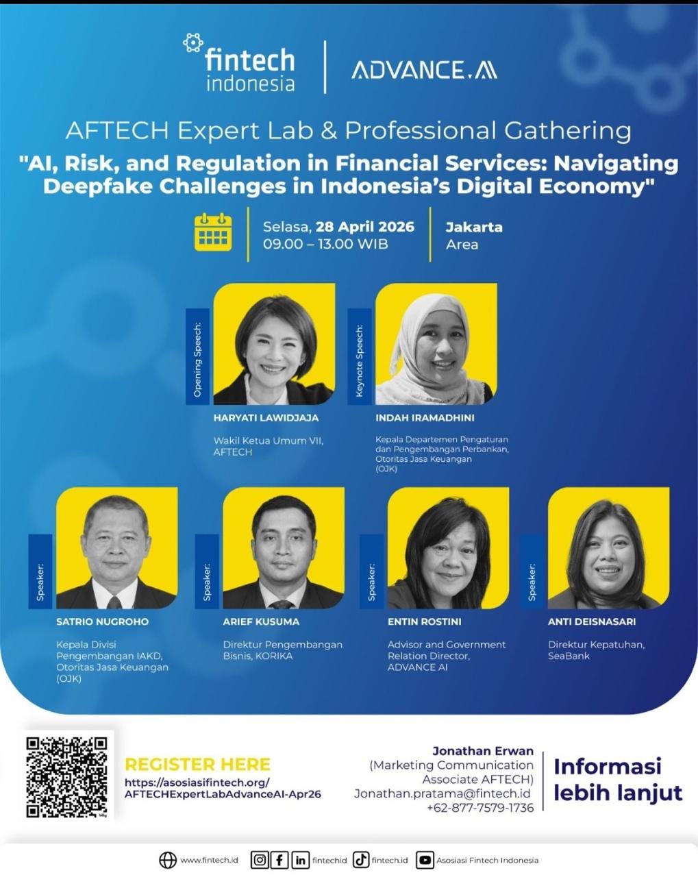 Jakarta, 28 April 2026 — Indonesia’s financial services industry is entering a new phase of digital risk as generative AI moves from experimentation to real-world fraud. This issue took centre stage at the AFTECH Expert Lab, “AI, Risk, and Regulation in Financial Services: Navigating Deepfake Challenges in Indonesia’s Digital Economy,” held at The Westin Jakarta in collaboration with Advance AI.